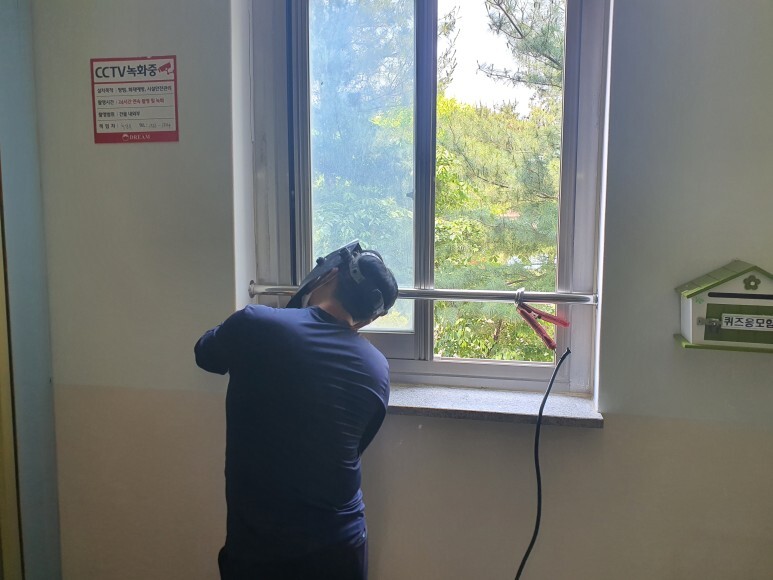 창문 쪽 안전 난간대 설치가 미비된 부분 보수 및 학생들의 안전을 위해 설치 목적이 있습니다.