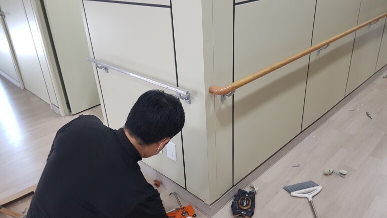 1. 벽부형 핸드레일 설치(SGP칸막이로 되어있어서 볼트로 고정 작업하였습니다)