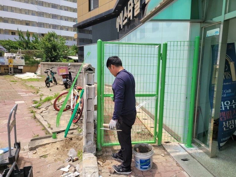 보도블럭 제거 후 휀스 높이에 맞게 설치합니다.