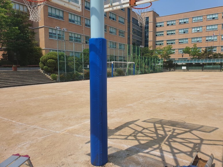 농구 골대 기둥 보호대 맞춤 제작 설치 공사 후기였습니다_인천 작전중학교